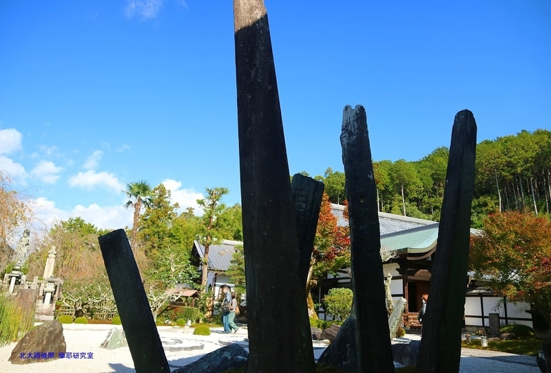 奔龍庭という枯山水の庭園、ここの瓦を用いました波紋の演出は、いつ頃から作庭に取り入れられているのでしょうが、白洲とともに気持ちよく個性的です。枯山水の庭園は数多ありますが、親しめるほどに近くで眺める事が出来るというのも面はゆく楽しいものです。